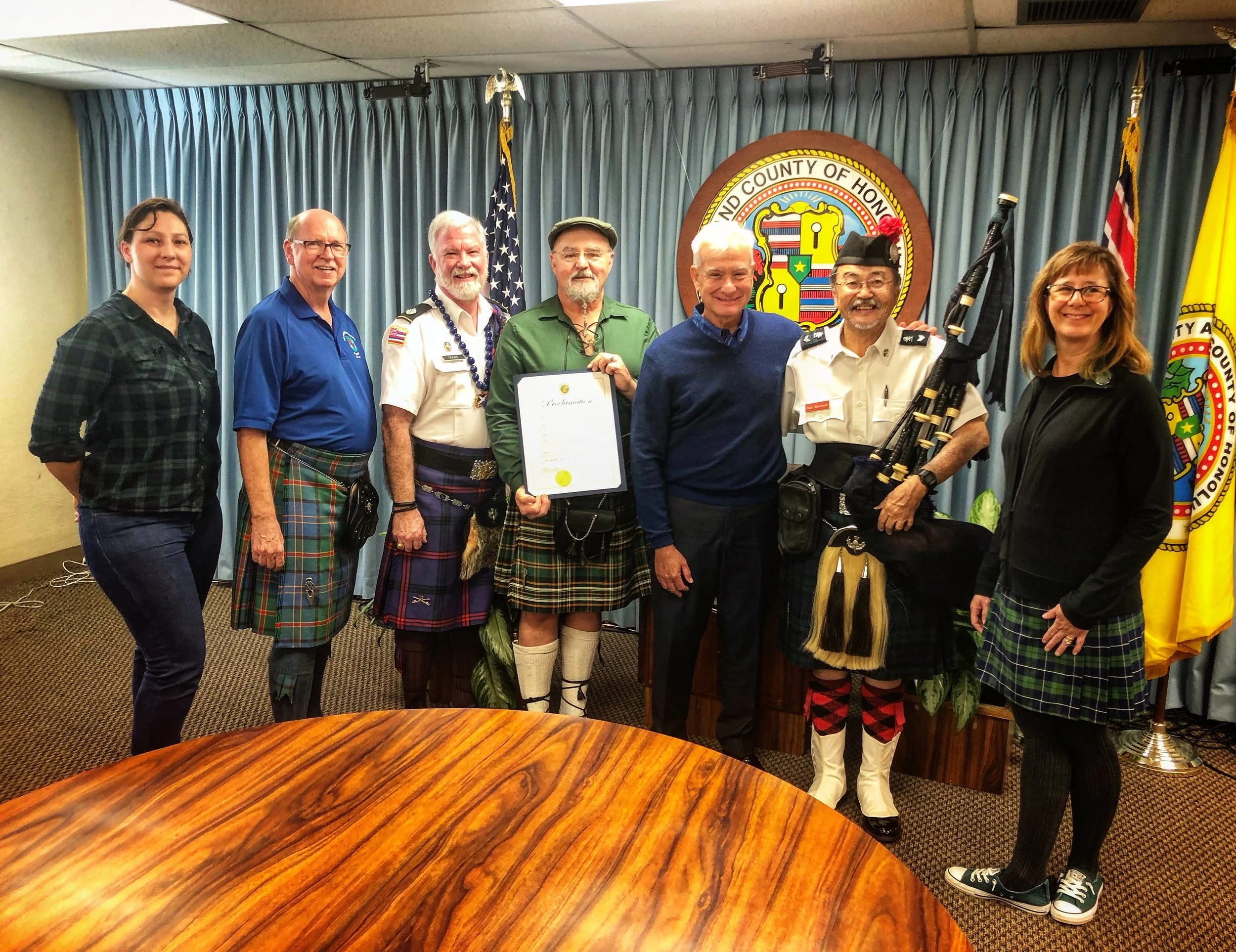 “Celtic Days in Hawaii are here! Another successful visit to the Hawaii State Capitol in support of Celtic Days in Hawaii. March 1st to April 30th is designated Celtic Days in Hawaii by proclamations of Governor Ige and Mayor Caldwell each year. ”